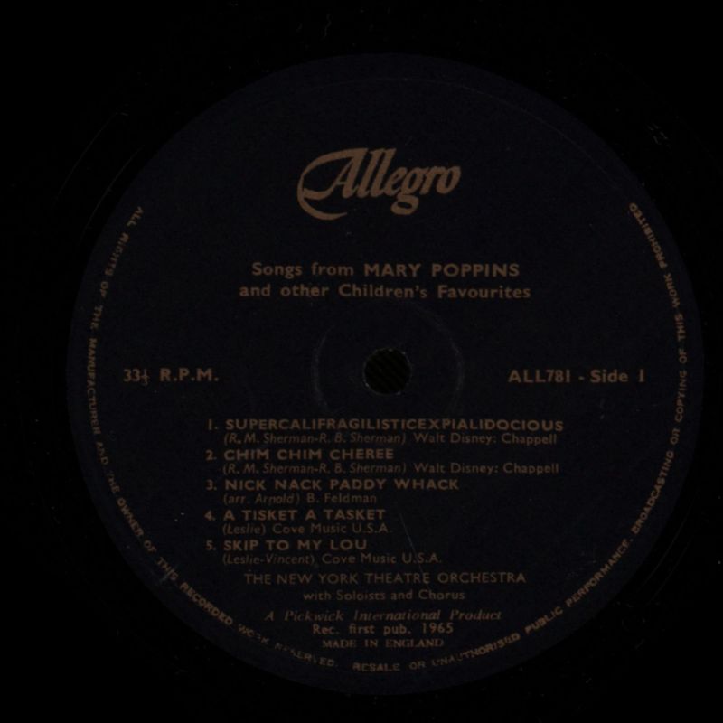 Songs From Mary Poppins-Allegro-Vinyl LP-Ex-/VG