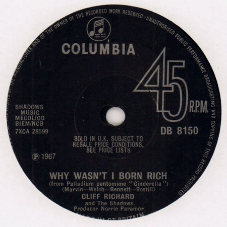 It's All Over/ Why Wasn't I Born Rich-Columbia-7" Vinyl-Ex/VG+